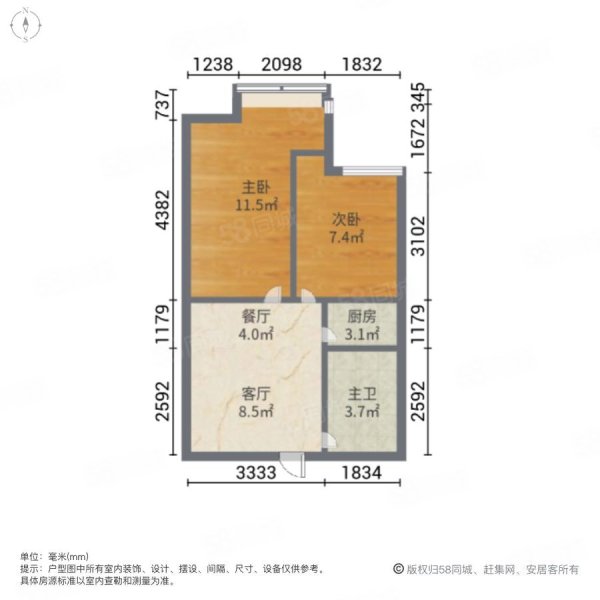 • 户型:2室2厅1卫