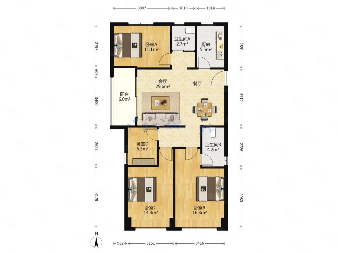 户型:4室2厅2卫