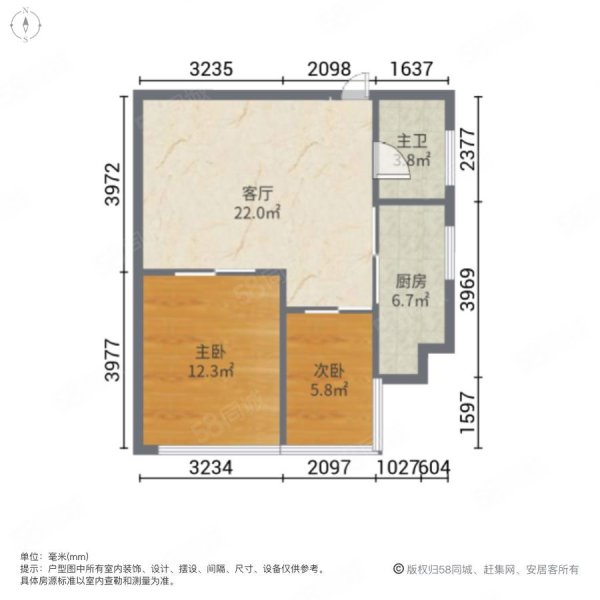 • 户型:2室1厅1卫