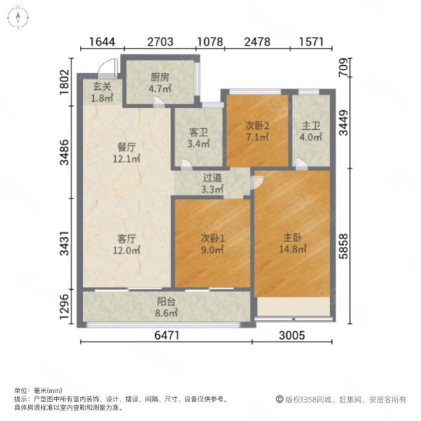 户型:3室2厅2卫