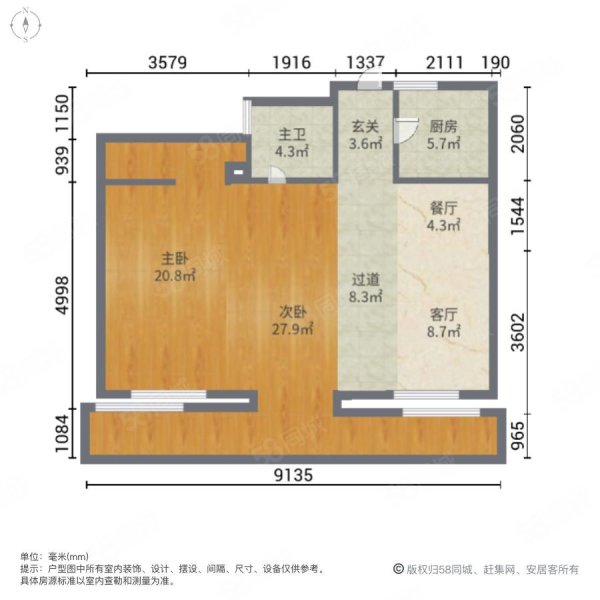 • 户型:2室2厅1卫