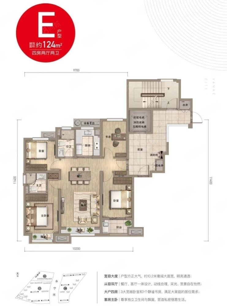 洪家万科城南苑高层4室2厅2卫124㎡