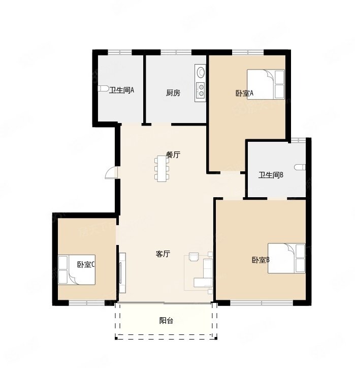 • 户型:3室1厅2卫