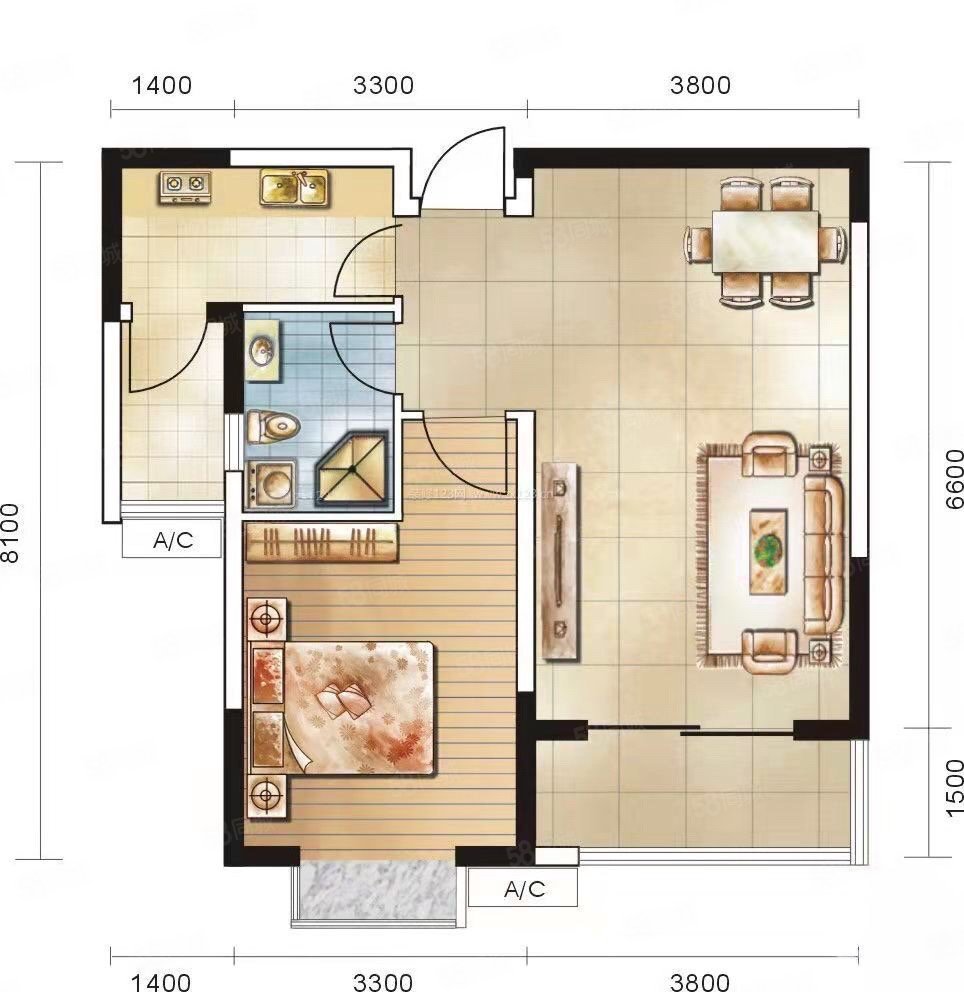 • 户型:2室2厅1卫