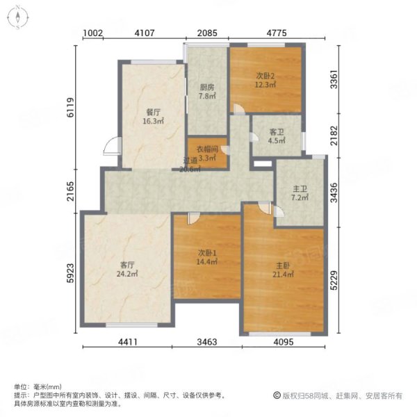 户型:3室2厅2卫
