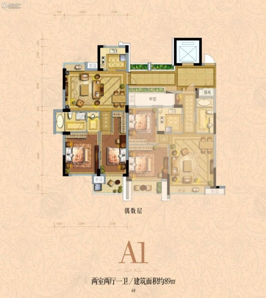 洪家开元银河名苑高层2室2厅1卫87㎡
