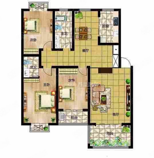 户型:3室2厅2卫