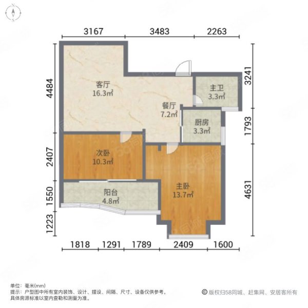 • 户型:2室2厅1卫
