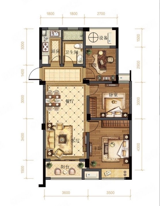 户型结构:3室2厅1卫